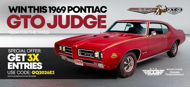 Imagine receiving the keys to this fully restored 1969 GTO Judge finished in ultra-rare Matador Red! This Judge is one of the finest stock-restored #1 condition examples in the country today. One lucky winner will be driving home in this show-stopping muscle car as part of the GTO Dream Giveaway! Enter now by going to https://www.dreamgiveaway.com/tickets/gto?promo=GQ2025E2 and you'll get TRIPLE bonus tickets with any donation of $25 or more! Your donation will benefit veterans' and children's charities.