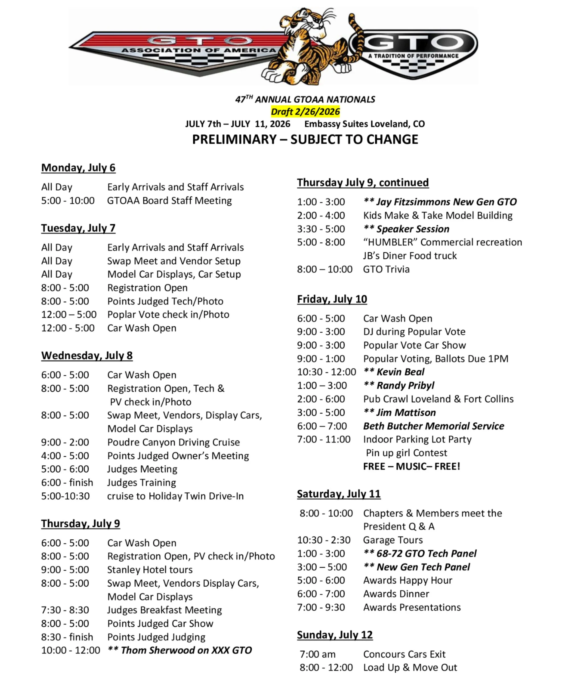 47th 2026 Loveland, Colorado Northern Colorado GTO Association